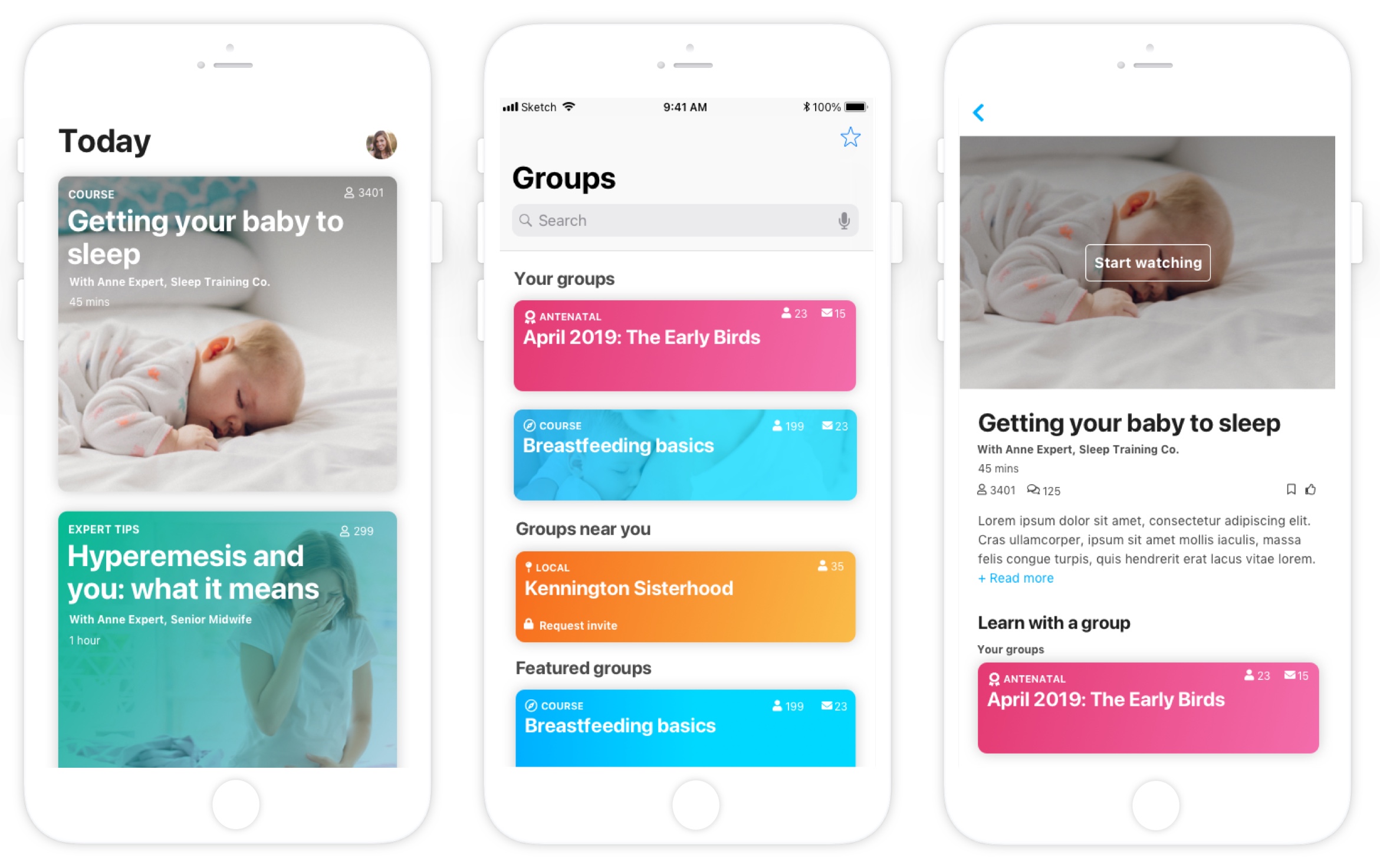 I started by conducting a deep-dive search through the forums, looking for peoples' direct experience of both antenatal groups and online learning platforms. This gave me a set of real-life user pain points and needs I could base the design around.